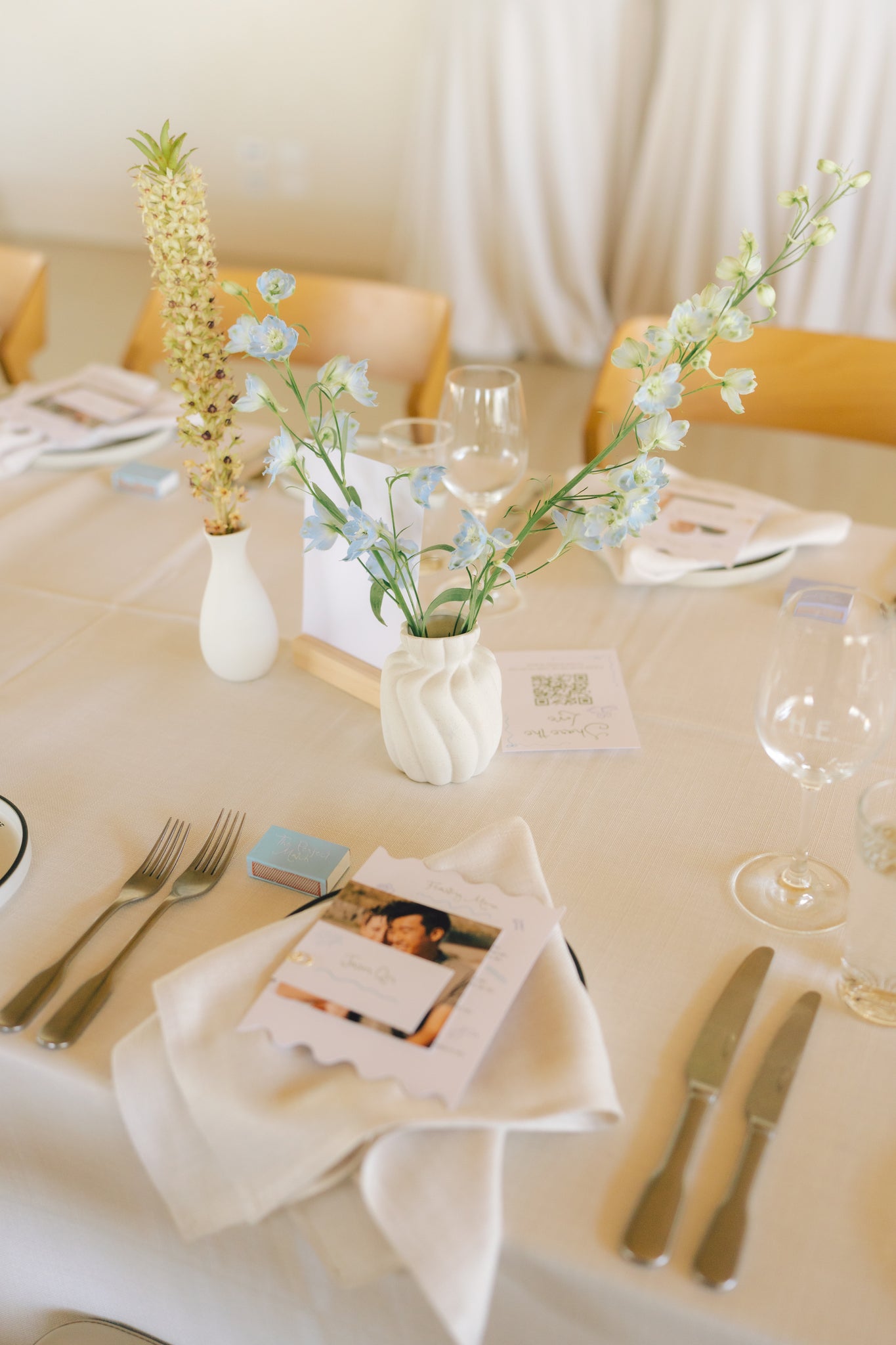 Add an elegant touch to your event with our stunning white ceramic bud vase collection, complete with premium floral styling.